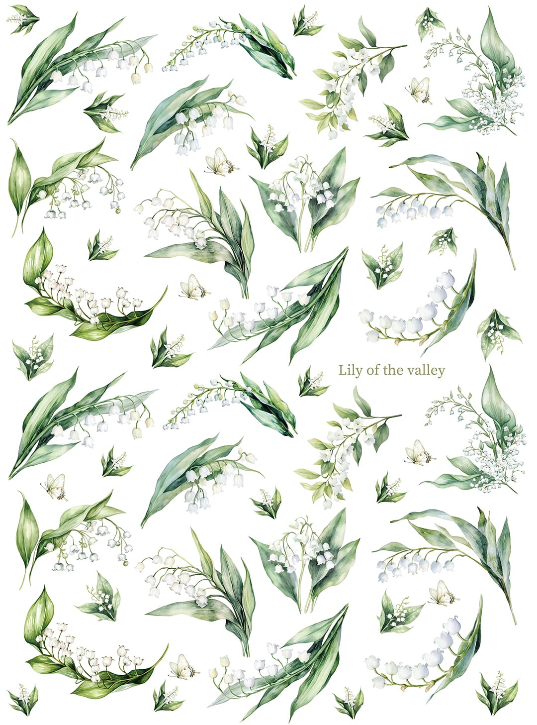 白磁用水彩Lily of the valley すずらん転写紙 A4サイズ (ポーセリンアート用転写紙)