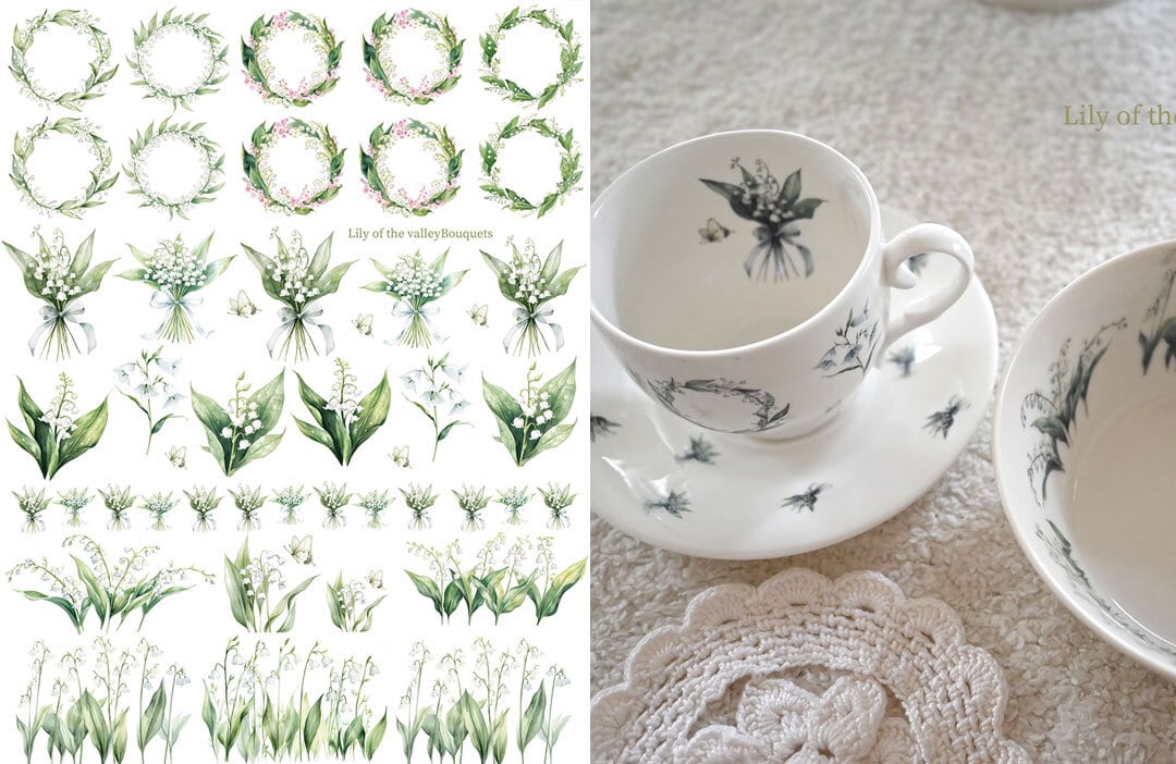 ●白磁用水彩Lily of the valleyBouquets すずらんブーケ転写紙 A4サイズ