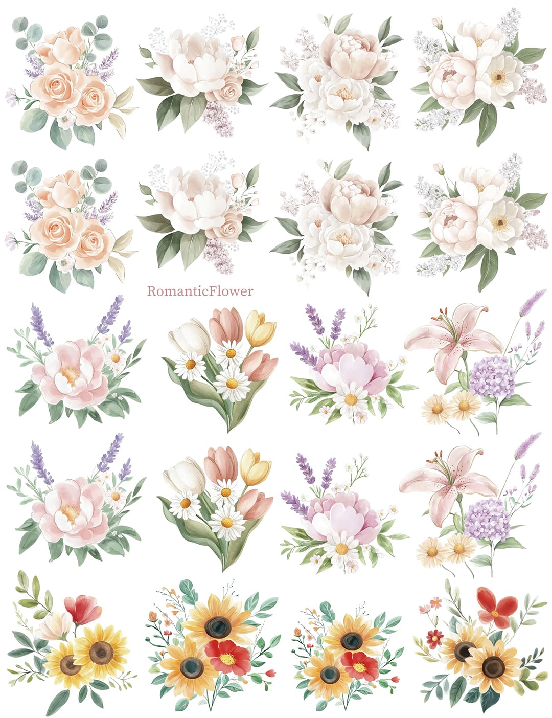 水彩タッチでふんわり描いたかわいいブーケ♪