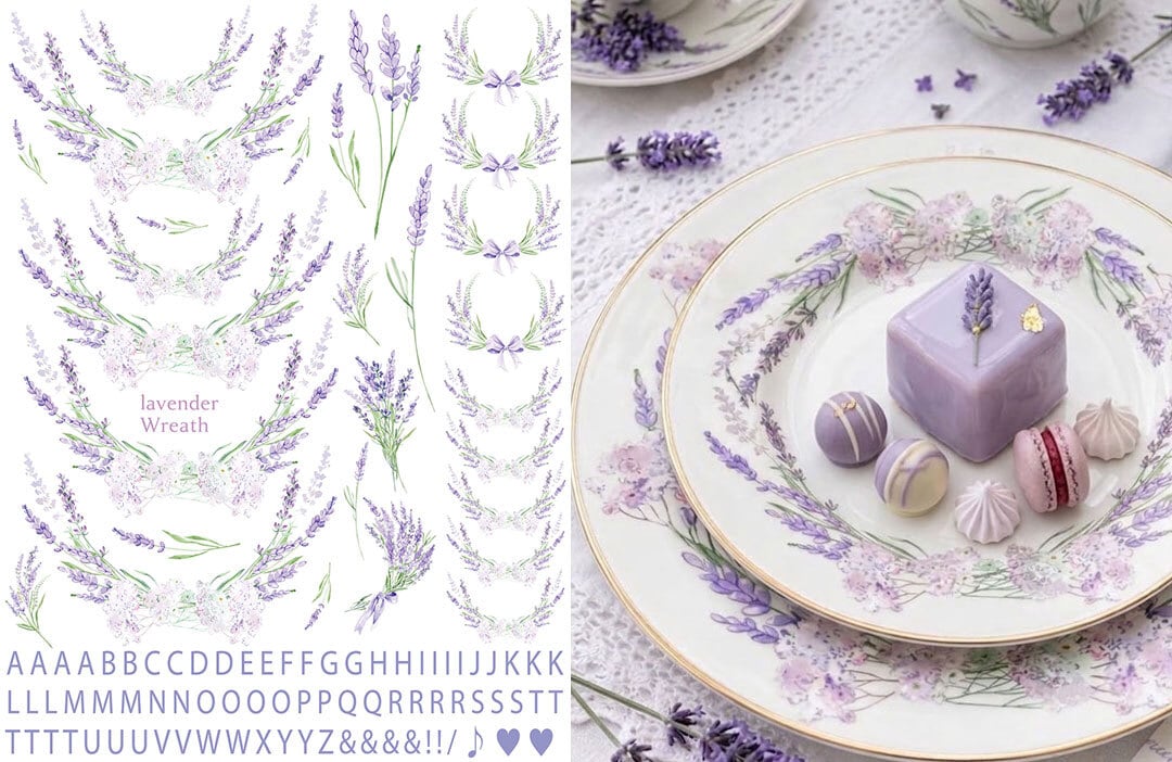 【set割引】2枚セット クリアラベンダー&リース転写紙 (ポーセリンアート・ポーセラーツ転写紙)