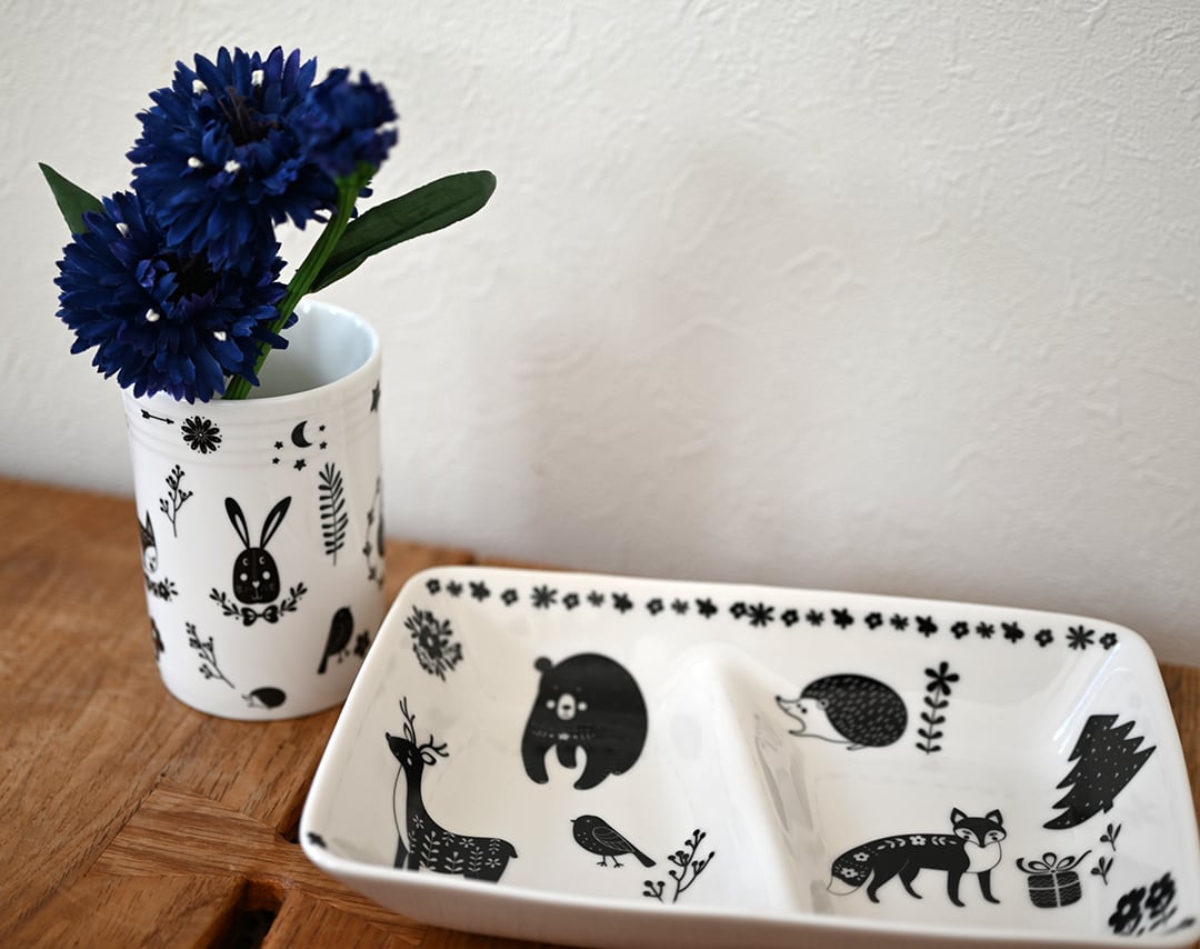 北欧の森に住む愛らしい動物達が描かれています。