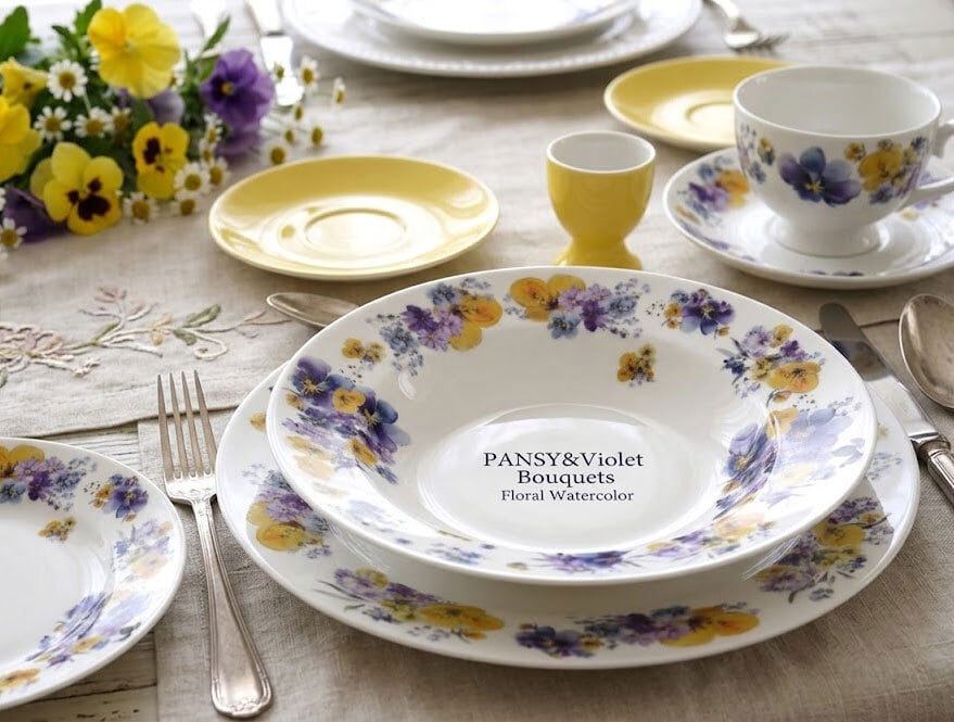水彩PANSY&Violet bouquet パンジー&ビオラブーケ A4サイズ (ポーセリンアート用転写紙)